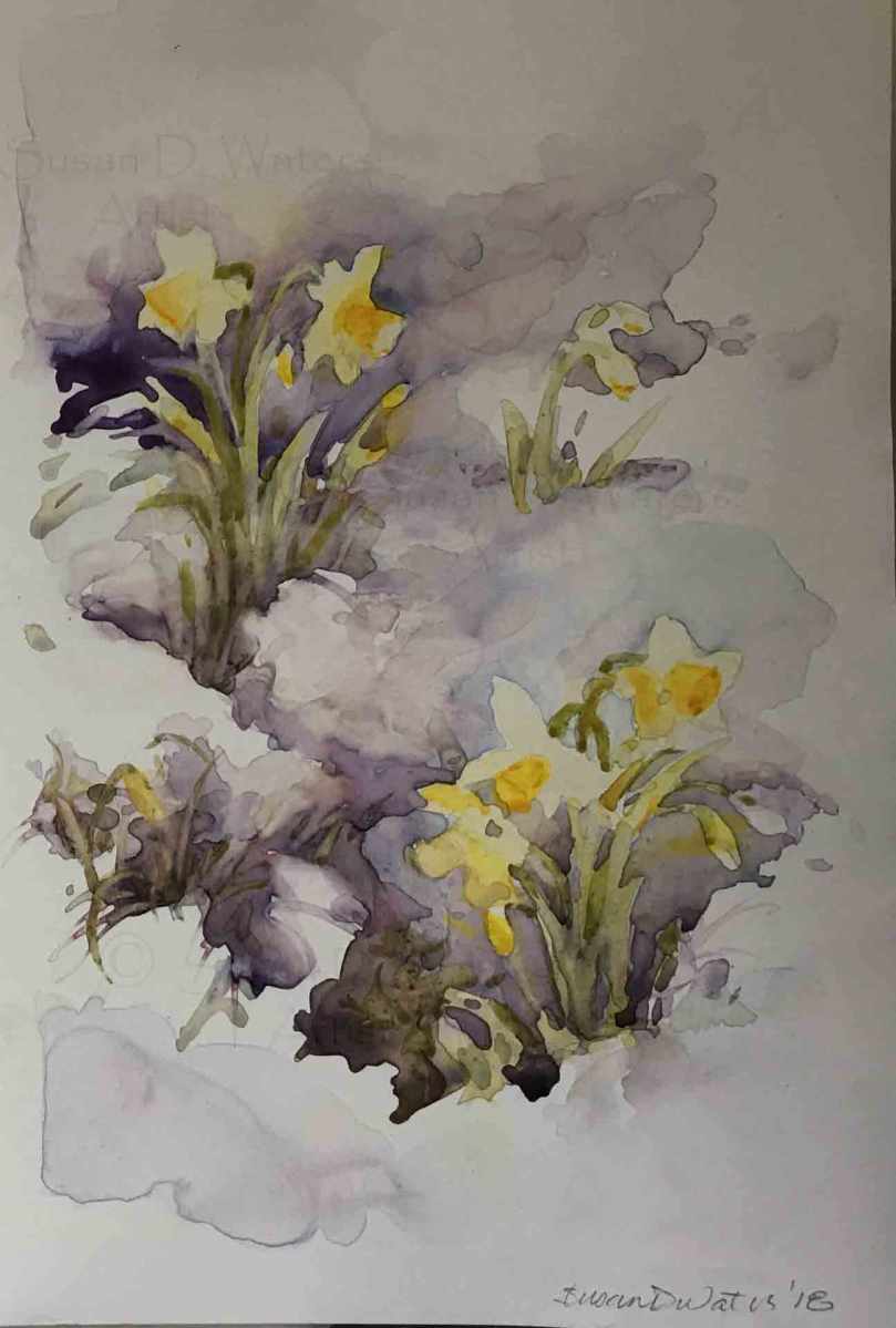 Daffodils-in-Snow-II,-Susan-Duke-Waters Previous Next Published January 8, 2018 at 1295 × 1920 in Latest Paintings Daffodils in Snow II, watercolor.