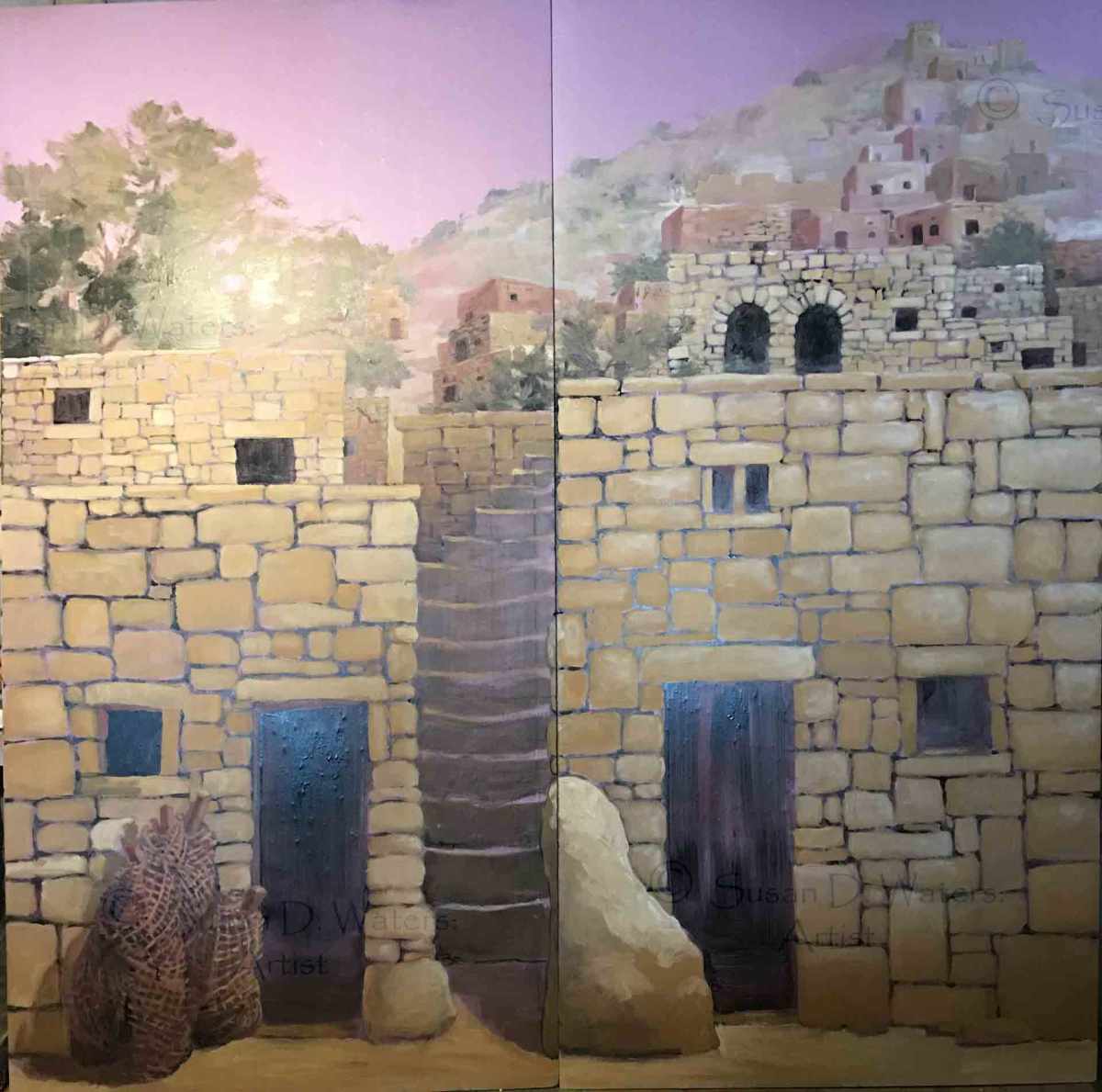 Scenery,-Fisherman-and-neighbouring-house,-Susan-Duke-Waters Published June 9, 2018 at 1920 × 1903 in Fisherman’s House Fisherman’s and Neighbouring House, 8’x 8′, acrylic.