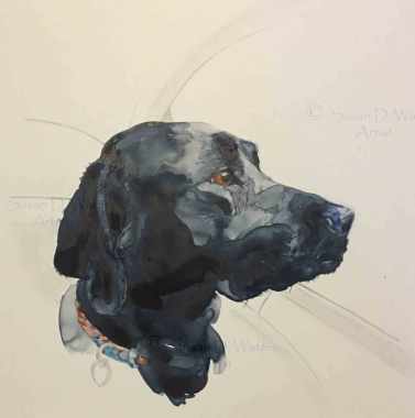 Labrador-in-Car,-Susan-Duke-Waters Published July 3, 2018 at 1904 × 1920 in Black Lab Kiya, watercolor.