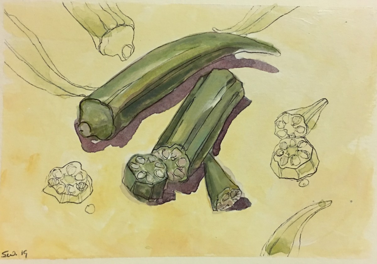 E5462767-BC46-4144-8FAC-6A350FE07AEC Next Published October 3, 2019 at 3129 × 2194 in Okra Okra study I, in acrylic and pen