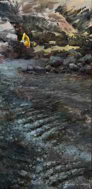 dragon-tracks-susan-duke-waters Published August 31, 2022 at 941 × 1920 in Quarry Visit Dragon Tracks, oil, 10”x 20”