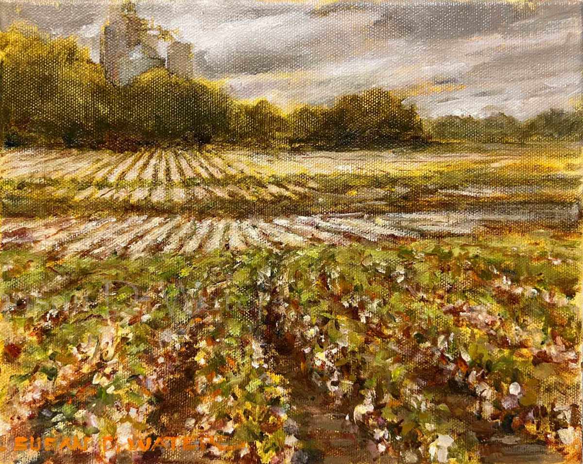 not-quite-ready-susan-duke-waters Published October 16, 2023 at 1920 × 1528 in Growing Cotton Not Quite Ready, plein air in oil.