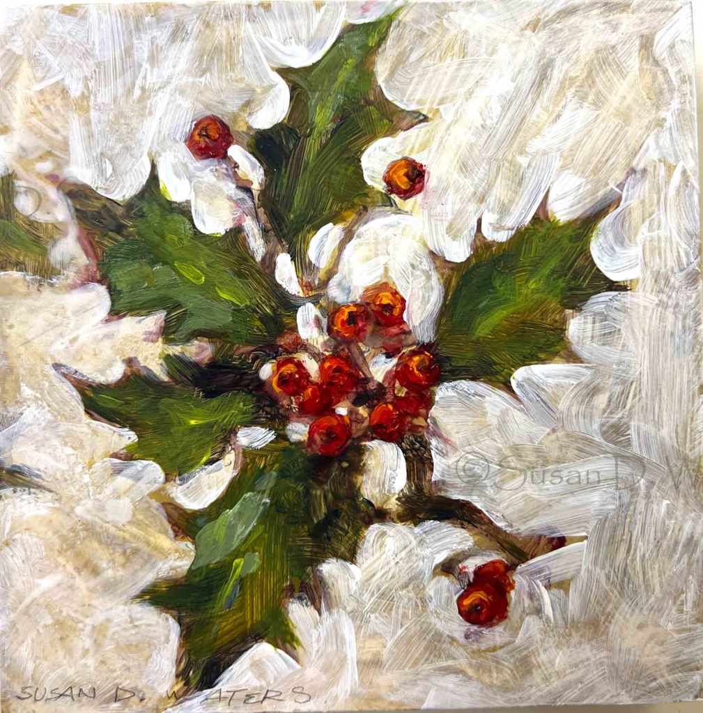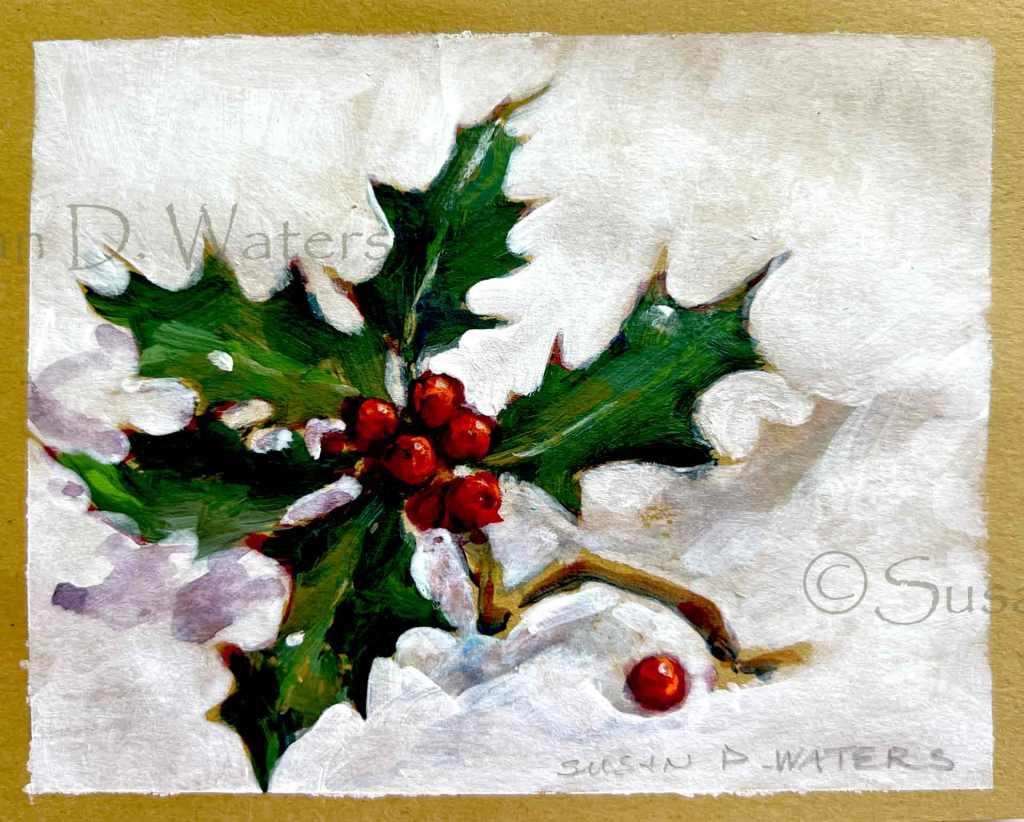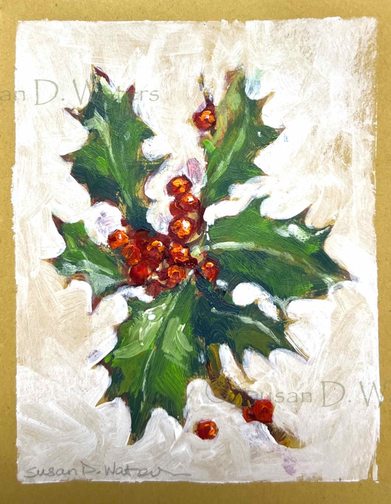 Holly Sprigs December 22, 2023 #’s 81-83. Small Holly studies and cards, acrylic. Share this: Click to share on X (Opens in new window) X Click to share on Facebook (Opens in new window) Facebook Like Loading...