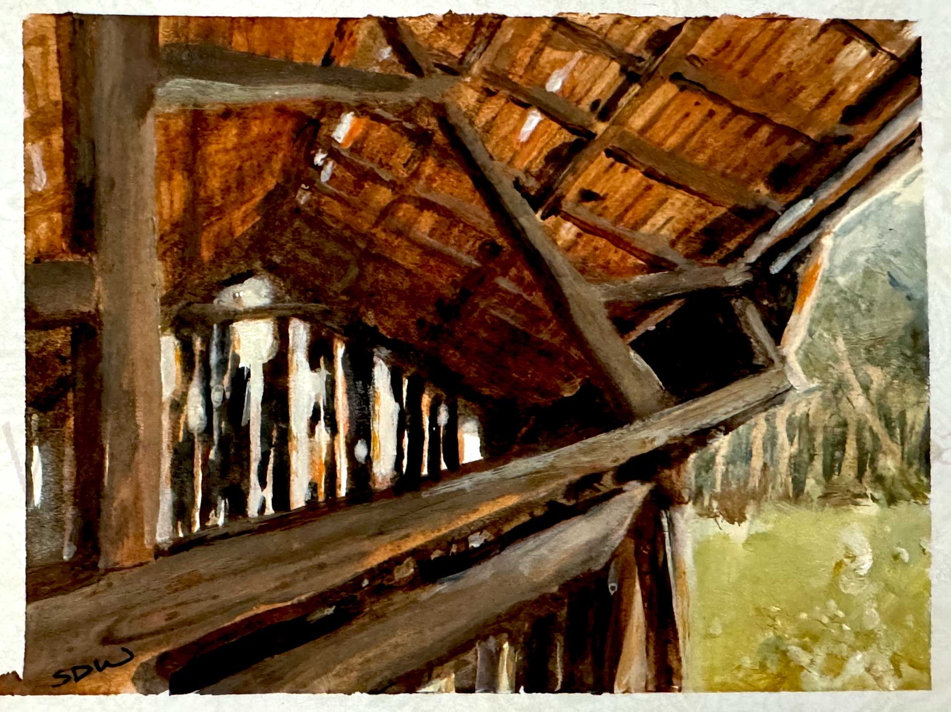 Barn-Interior,-Cades-Cove,-Susan-D-Waters Published September 12, 2024 at 1920 × 1438 in Rafters Rafters, in acrylic.