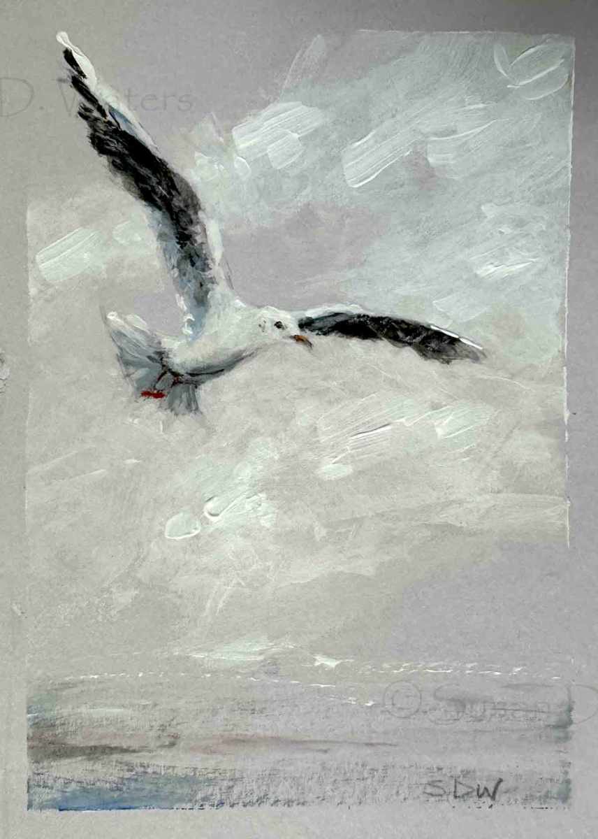 Gull-I,-Susan-D-Waters Previous Published November 5, 2024 at 1369 × 1920 in Flying Time Aloft, 6″ x 4″ acrylic