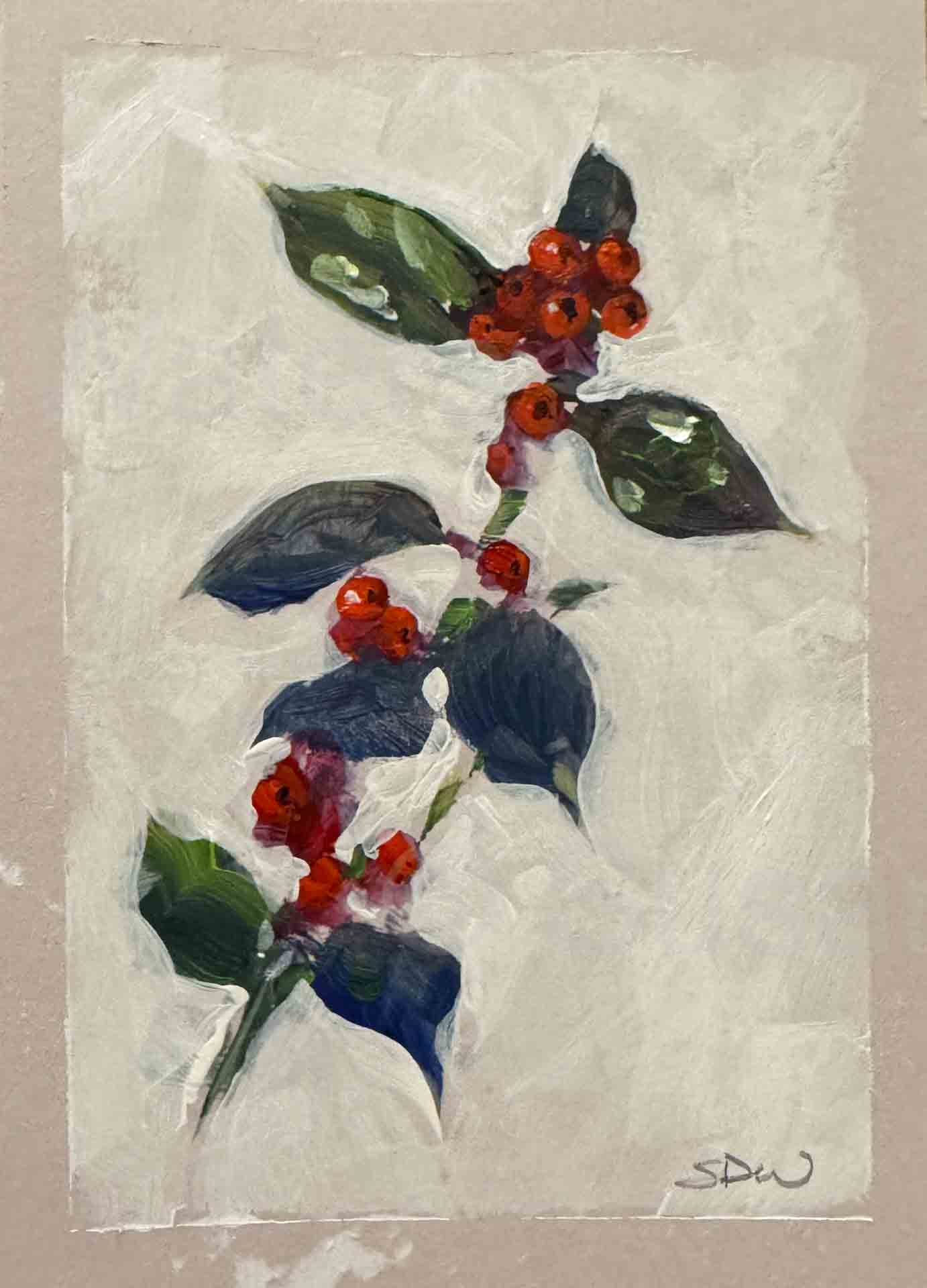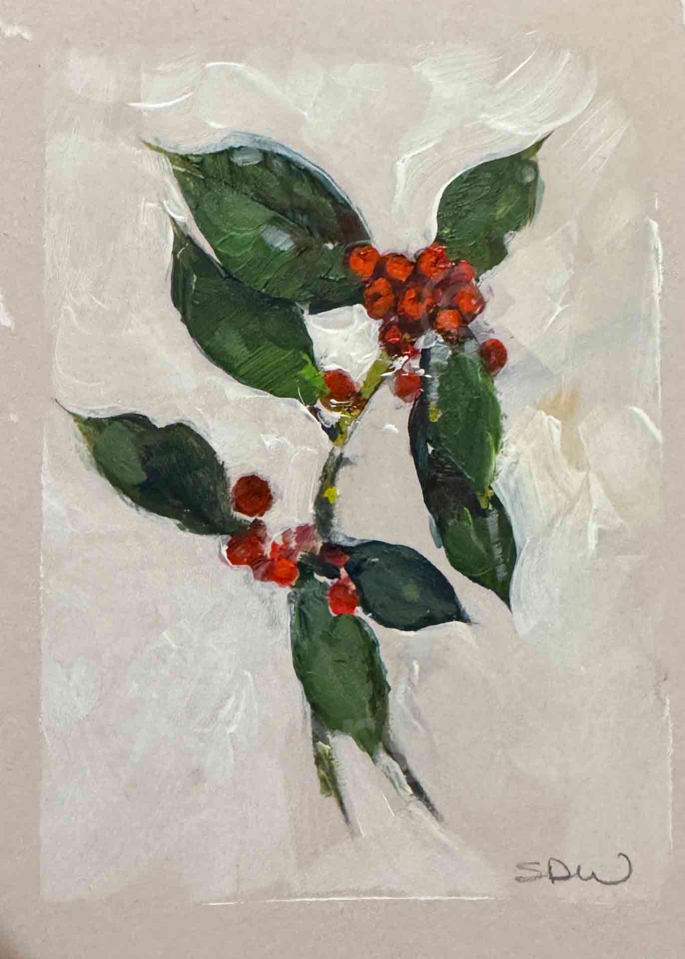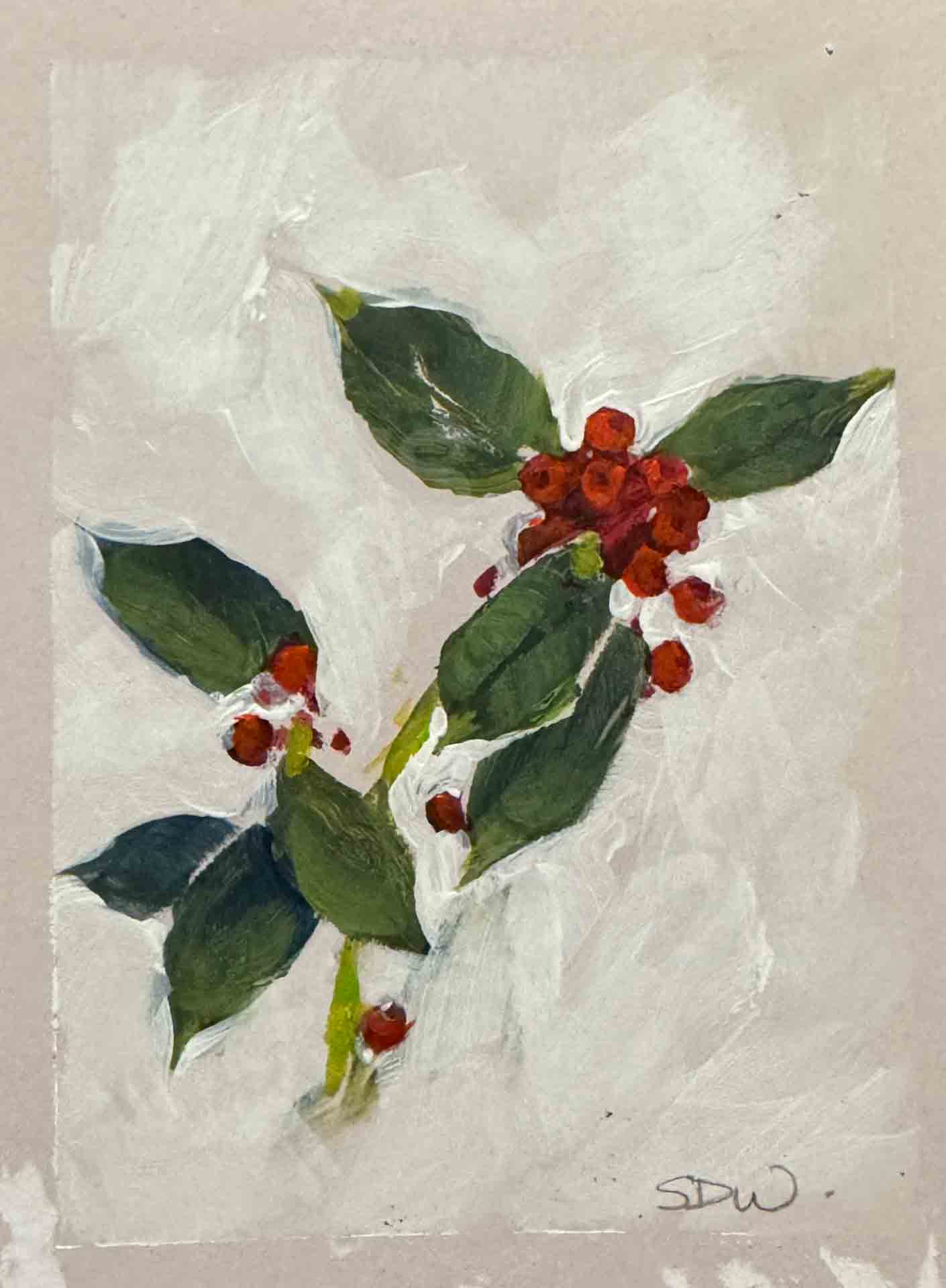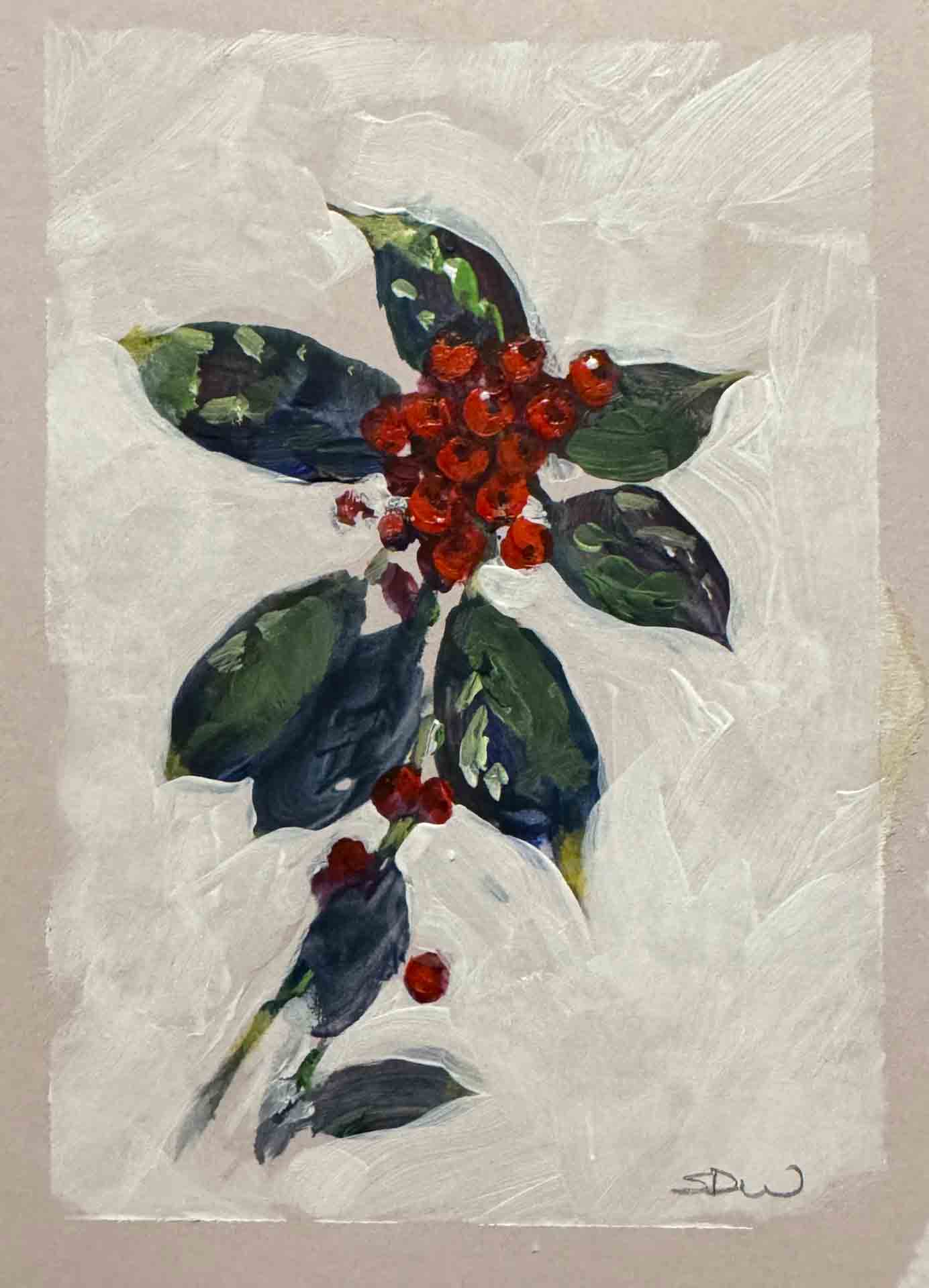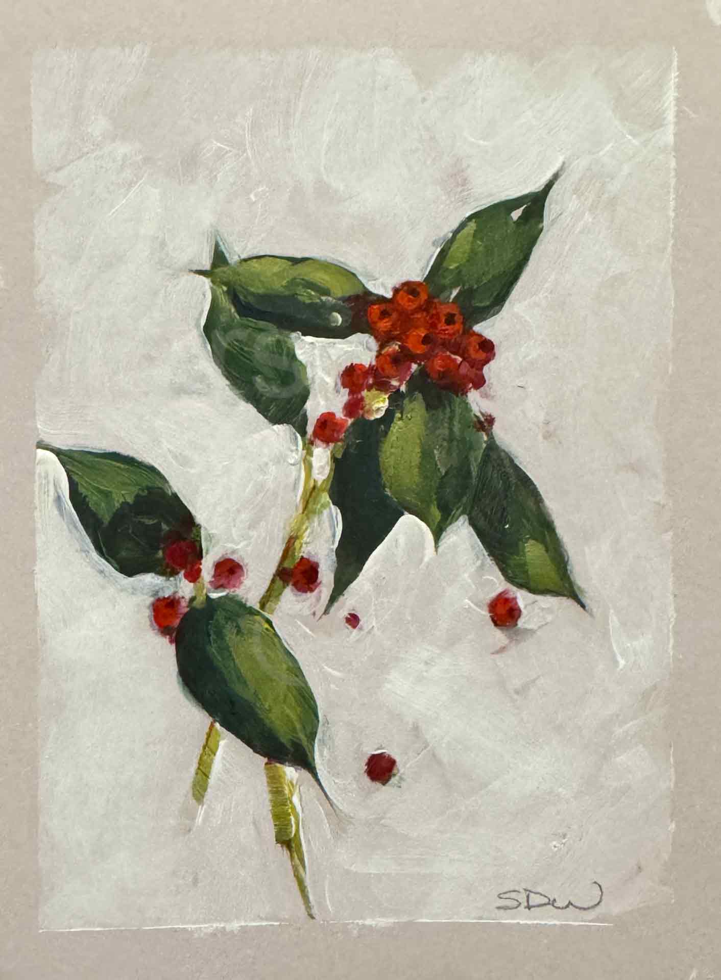 Still Bright January 13, 2026January 13, 2026 #’s 1-6. Holly, 3″ x 5″ in acrylic. Share this: Click to share on X (Opens in new window) X Click to share on Facebook (Opens in new window) Facebook Like Loading...