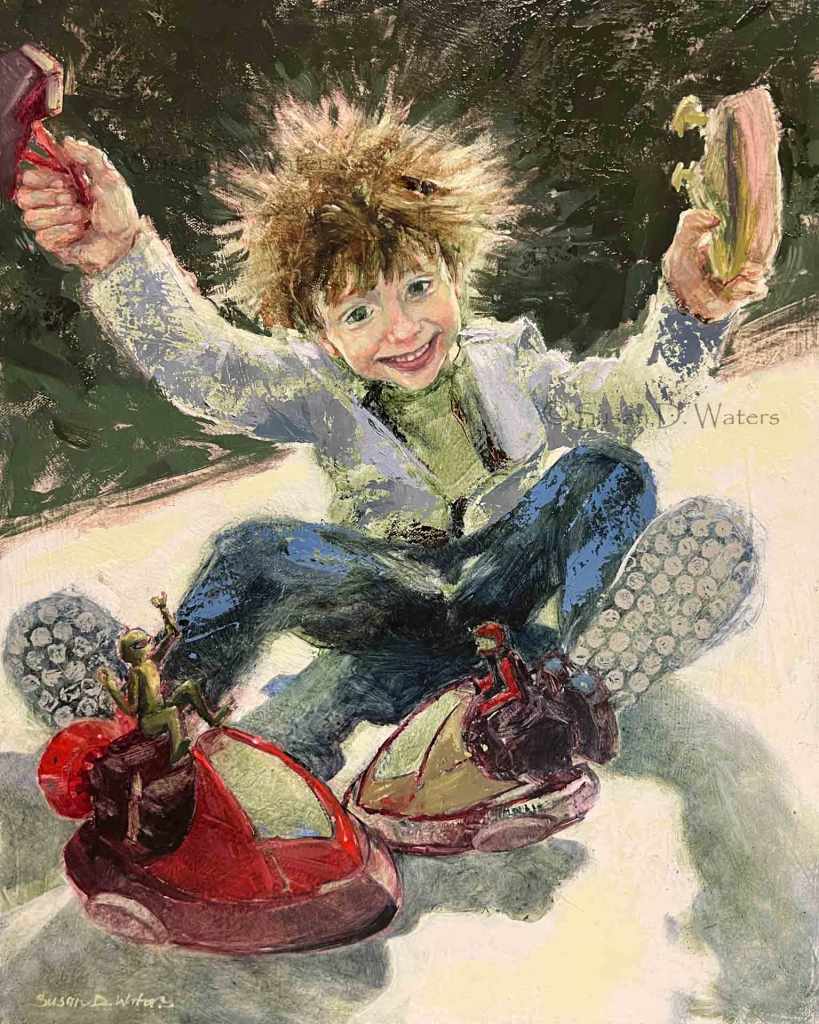 #33., Painted during the Quick Draw, (3rd place Professional), plein in oil. Several pieces of pine straw and leaf debris bear evidence of the location it was painted in, for example on the closest child’s forearm. These are best removed once the painting is no longer smear-wet. (Photo courtesy of the Portrait Society of Atlanta via “Annie”, Thank you)