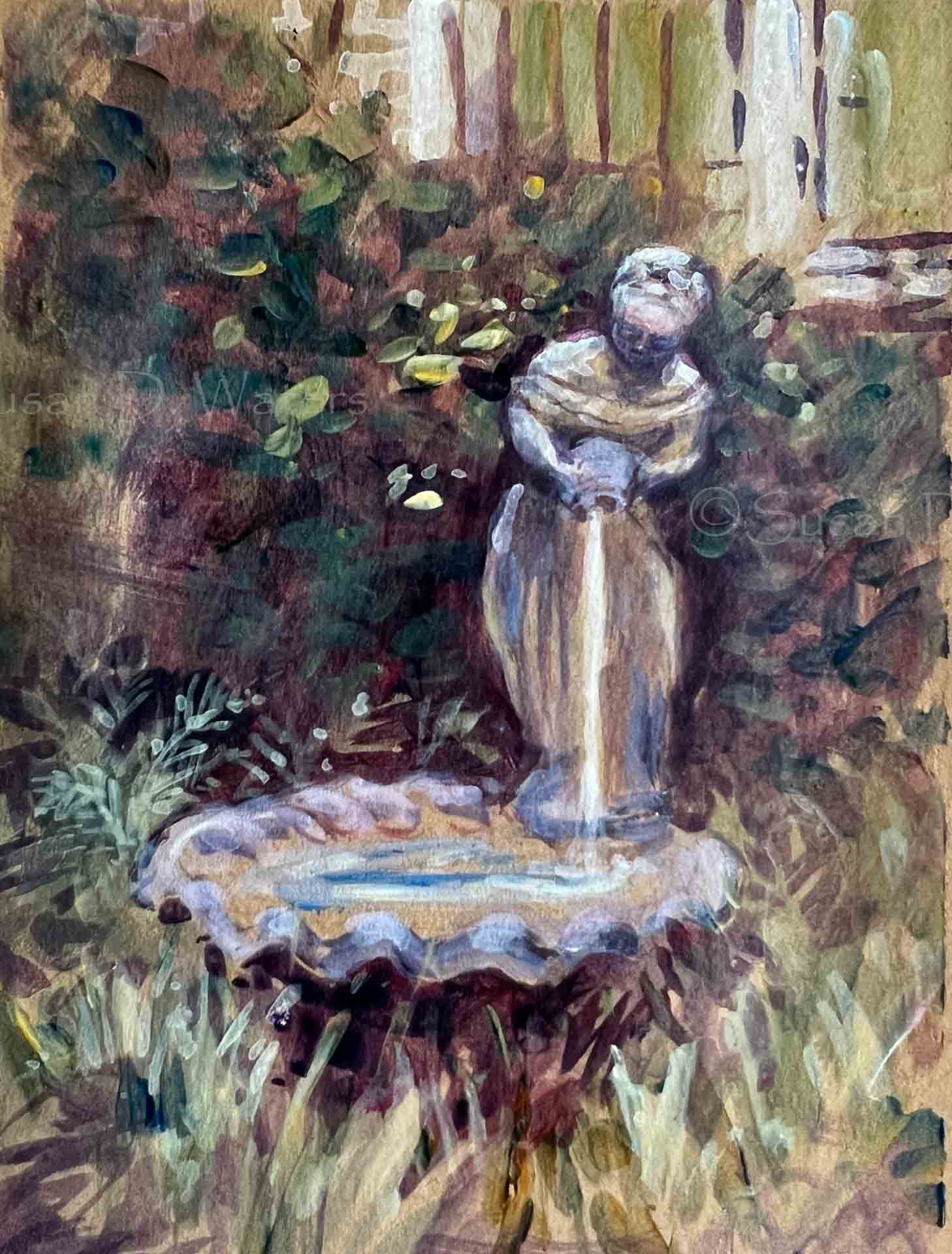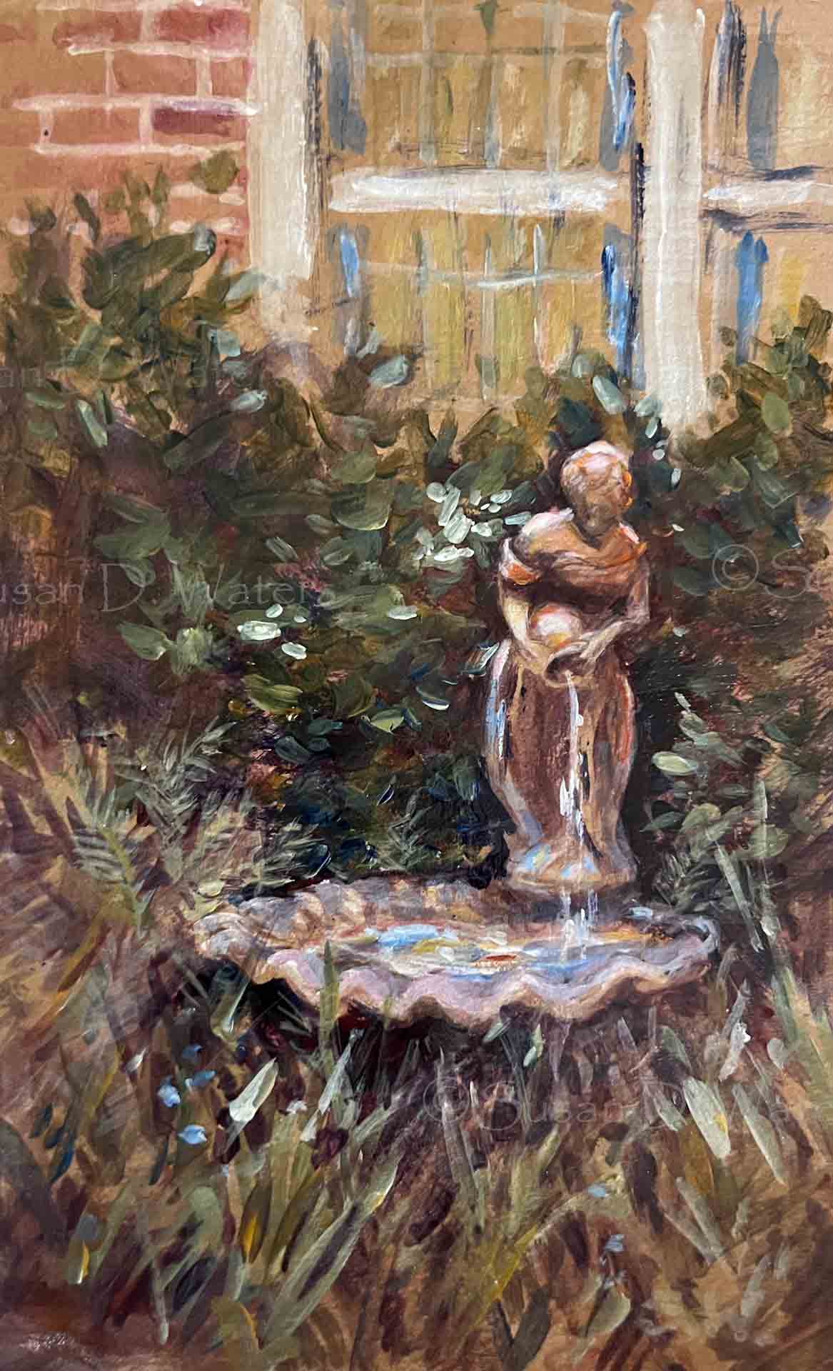 #26. Painted on location in the courtyard beside Alpharetta City Hall during the Paint the Town paint out. The final version which is on display at the Alpharetta Arts Center has sparrows flying around and bathing. In the rush to turn it in, I didn’t take an updated photograph.
