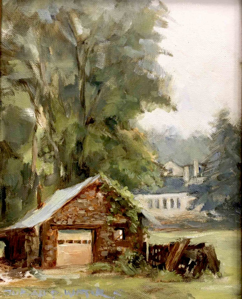 #89. Gated Community, plein air in oil. (I added small birds after this photograph was taken. It was a busy week and difficult to keep up with documenting work.)