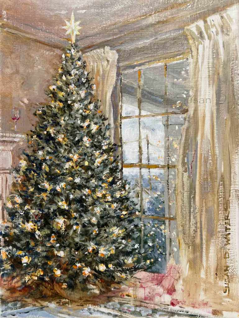 Frosted Windowpanes… November 10, 2025November 10, 20251 Comment #74. Frost and Flame, 24″ x 12″ in oil.