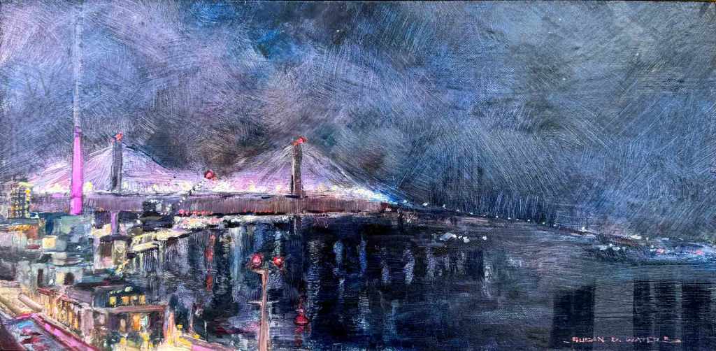 #66. Bohemian Bridge View, Savannah GA, 12″ x 24″, painted en plein air, painted at Georgia Color plein Air 2024, sold. Special thanks to “Rocks on The Roof”, Bohemian Hotel.