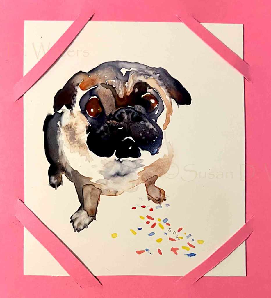 #66. Bloomie’s Birthday, watercolor, 6″ x 5″.