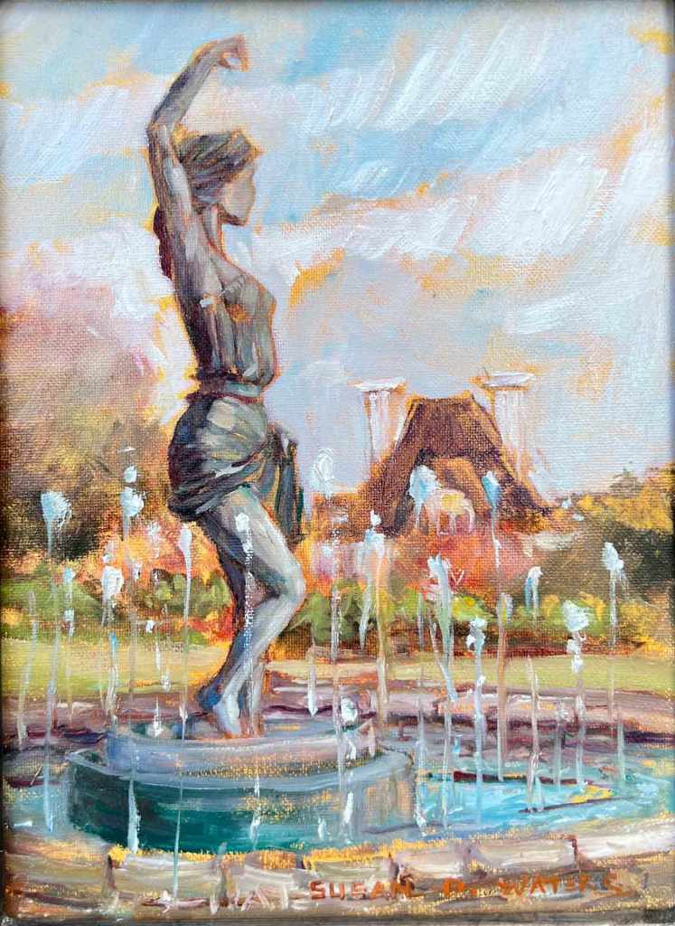 #69. The Fountain at Chateau Elan, painted en plein air during the Georgia Color 2022 two-hour Paint Quick, in oil, sold.