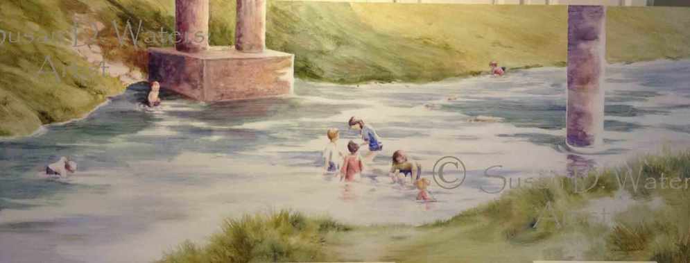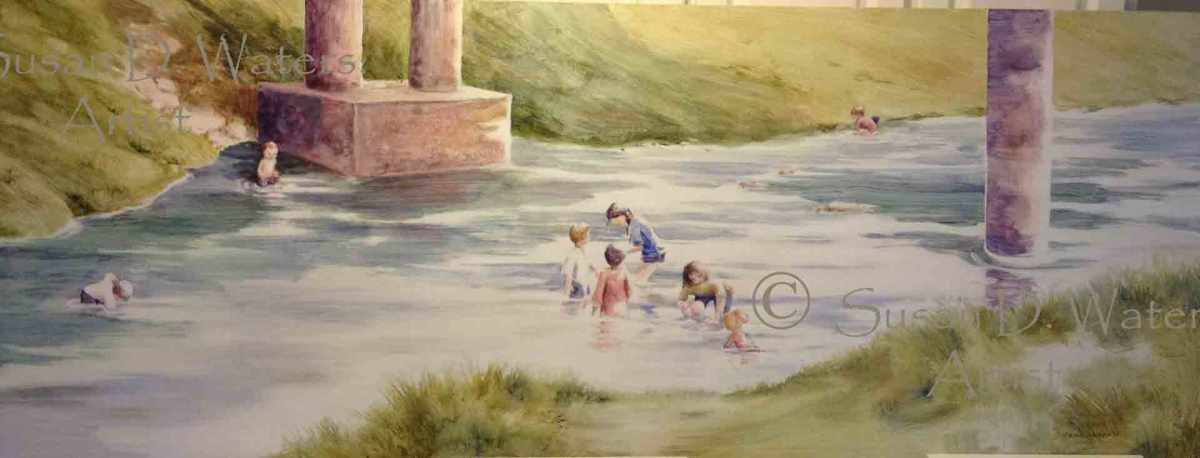 Children-in-Euharlee-Creek,-Susan-Waters Published May 20, 2017 at 1920 × 733 Children playing in the Euharlee Creek down-town Rockmart, Georgia. Acrylic on panel, 40″ x 18″ Sold