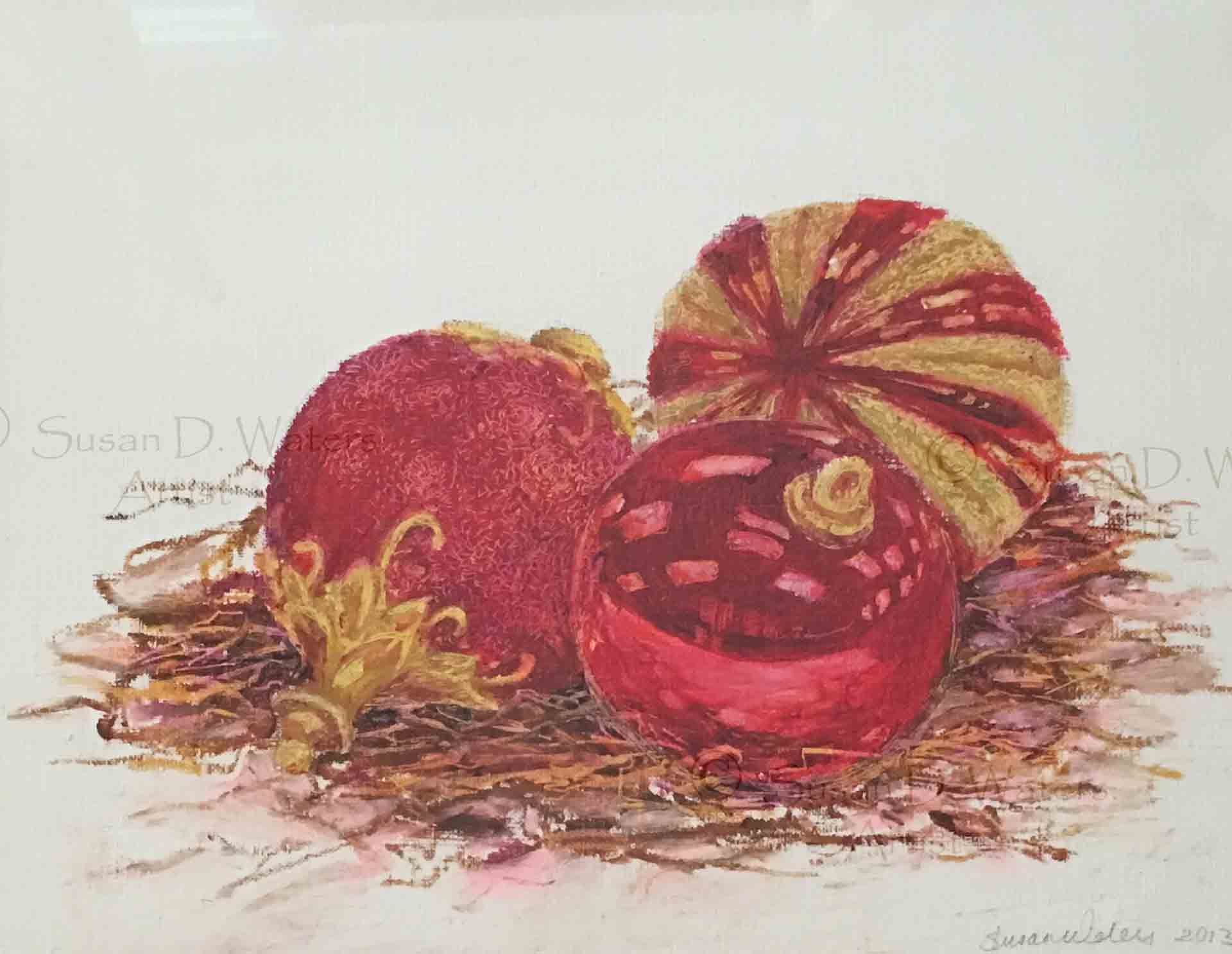 Christmas-Baubles-II,-Susan-Duke-Waters Published November 27, 2017 at 1920 × 1486 Christmas Baubles II, Oil Pastel