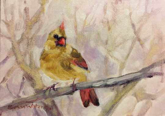 Female-Northern-Cardinal,-Susan-Duke-Waters Published November 12, 2019 at 1920 × 1351 Female Northern Cardinal, painted in acrylic.