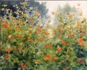 - Butterfly filled Lantana patch, painted en plein air on a hot August day.