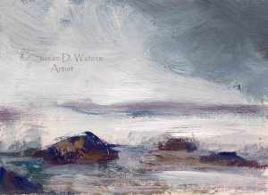- Fish Creek Cotton Fields, 10″ x 20″, plein air in oil.