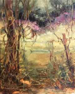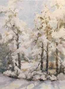 - Snow in Pines, plein air following December 2017 winter storm, Rockmart Georgia, oil on canvas.