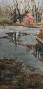 - Seaborn Jones Park in Puddles, plein air, oil., Sold