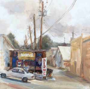 - Sign Shop, Rockmart Georgia, plein air in oil.