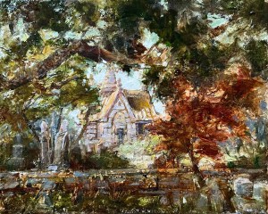 - Oakland Cemetery, Atlanta, Sold, plein air in oil, 8″ x 10″.