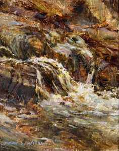 - High Shoals Waterfall, Paulding County, GA. plein air, oil. Sold