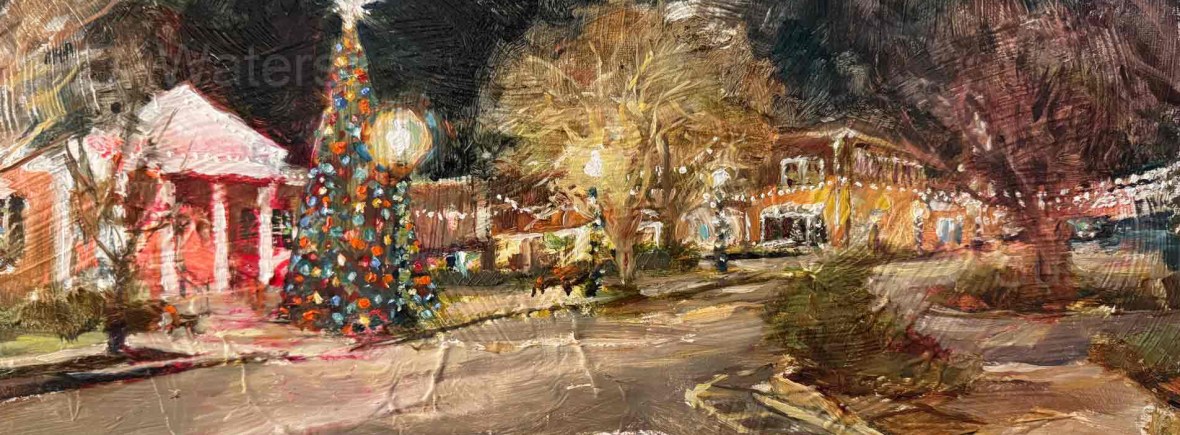 - Lighting of the Tree, Rockmart, 8″ x 10″, plein air in oil