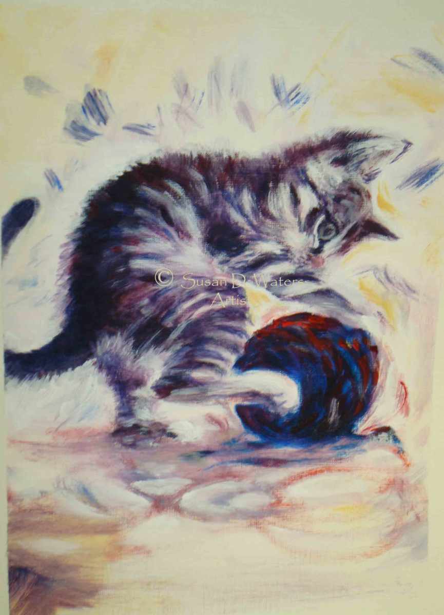 Kitten-and-Yarn,-Susan-Waters Previous Next Published May 3, 2017 at 2232 × 3096 in Still Life and Floral A kitten playing with yarn, acrylic, 6″ x 8″ Like Loading...