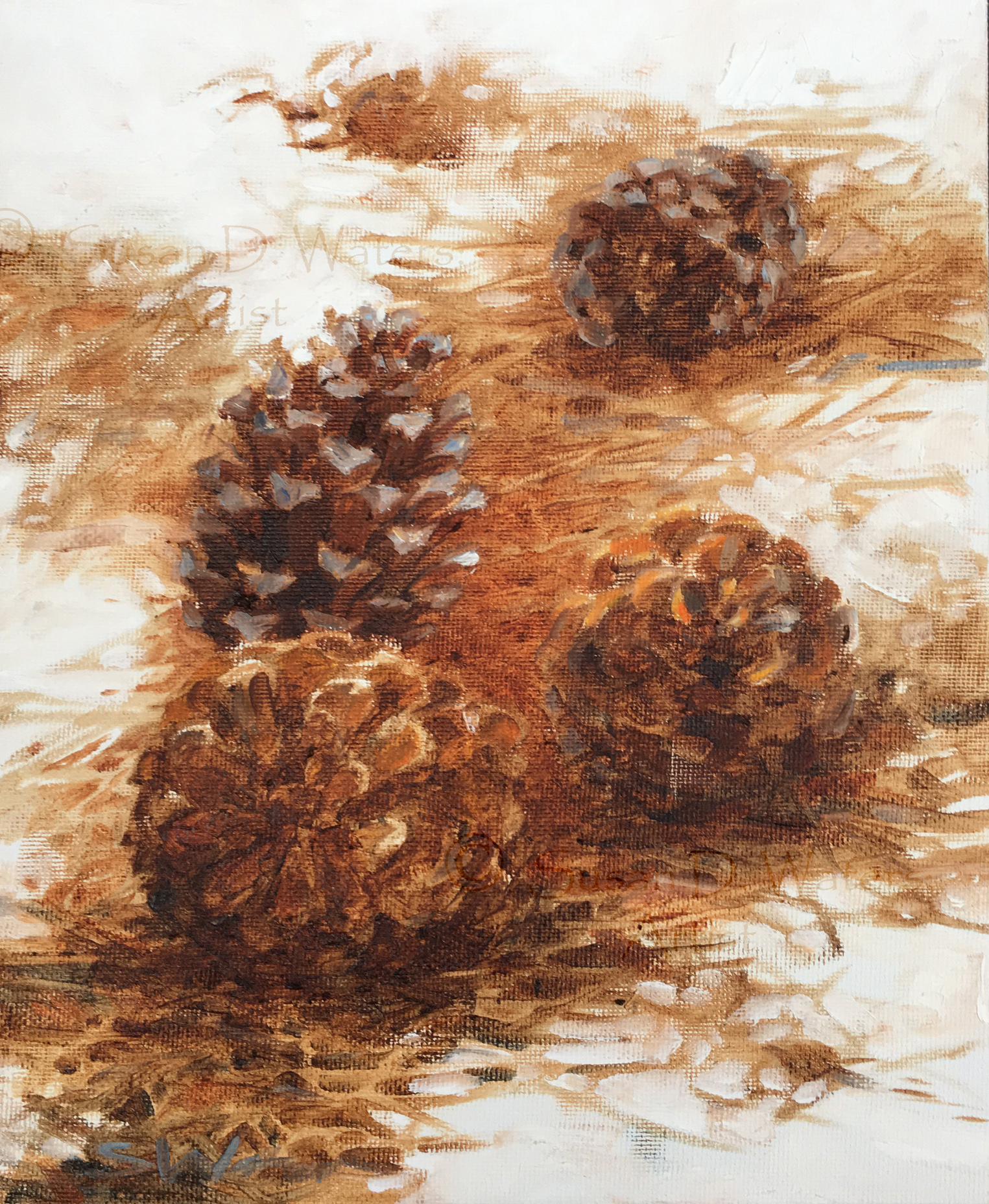Pine cones in Snow Previous Next Published August 10, 2017 at 1525 × 1856 in Still Life and Floral Pine cones in Snow, oil on canvas, 8″ x 10″ Like Loading...
