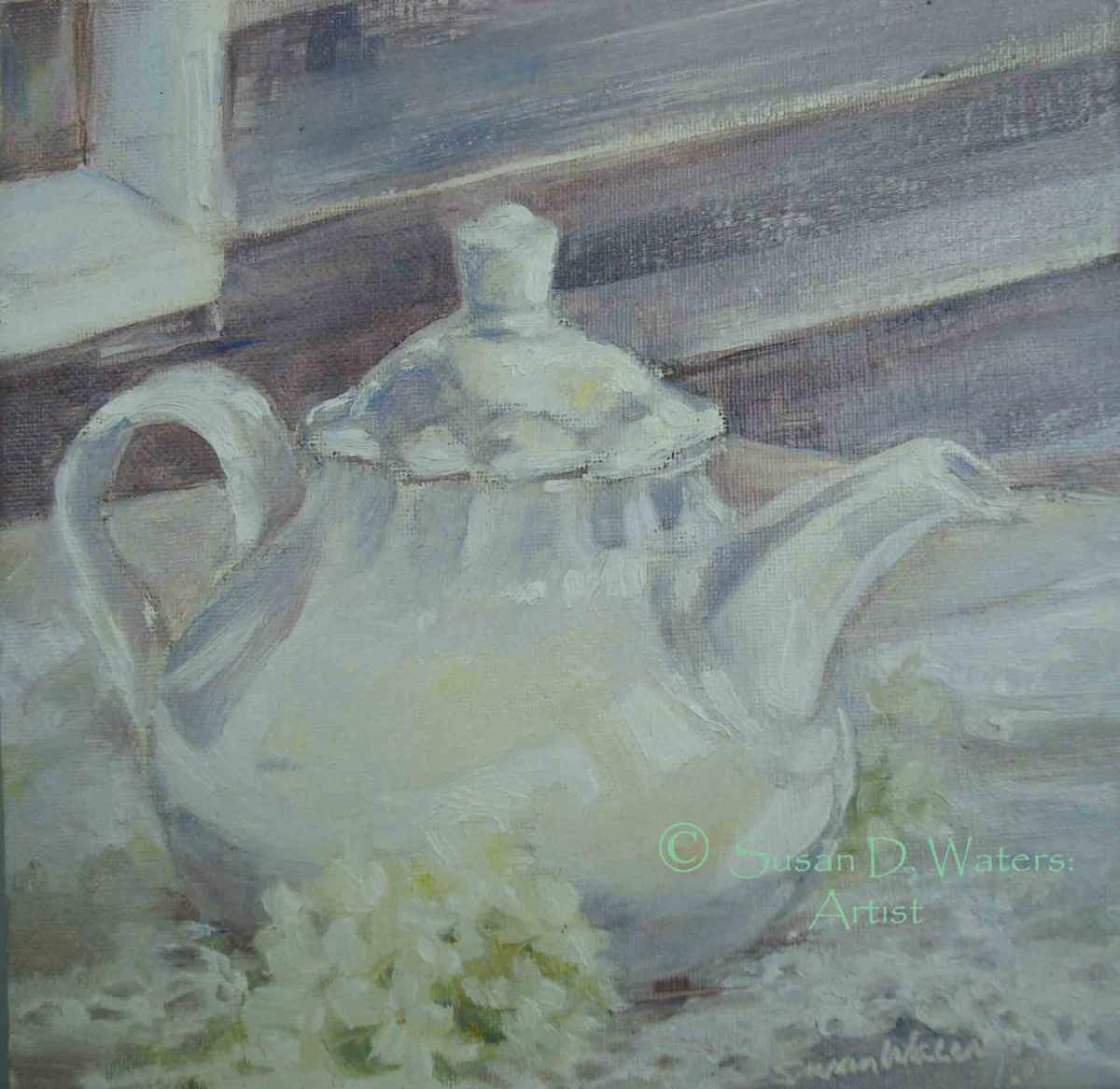 Teapot-and-Hydrangea-in-White,-Susan-Waters Previous Next Published May 3, 2017 at 1920 × 1868 in Still Life and Floral Teapot and Hydrangea in White painted on a rainy day on the porch. Oil on panel, 8″ x 8″ Like Loading...