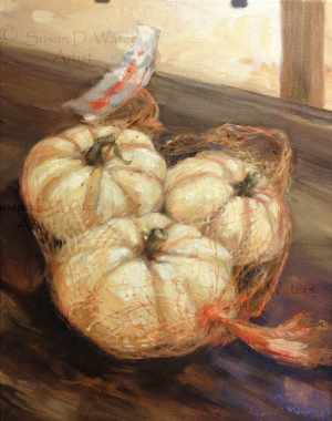 Tiger-Gourds-I,-Susan-Duke-Waters Previous Next Published November 18, 2017 at 1515 × 1920 in Still Life and Floral Tiger Gourds I A trio of striped pumpkins in net bag, oil on canvas. Like Loading...