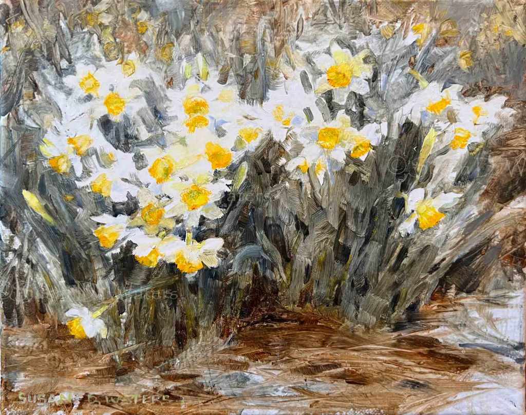 #5. Daffodil Shower, 8″ x 10″, in oil, Painted in the rain.